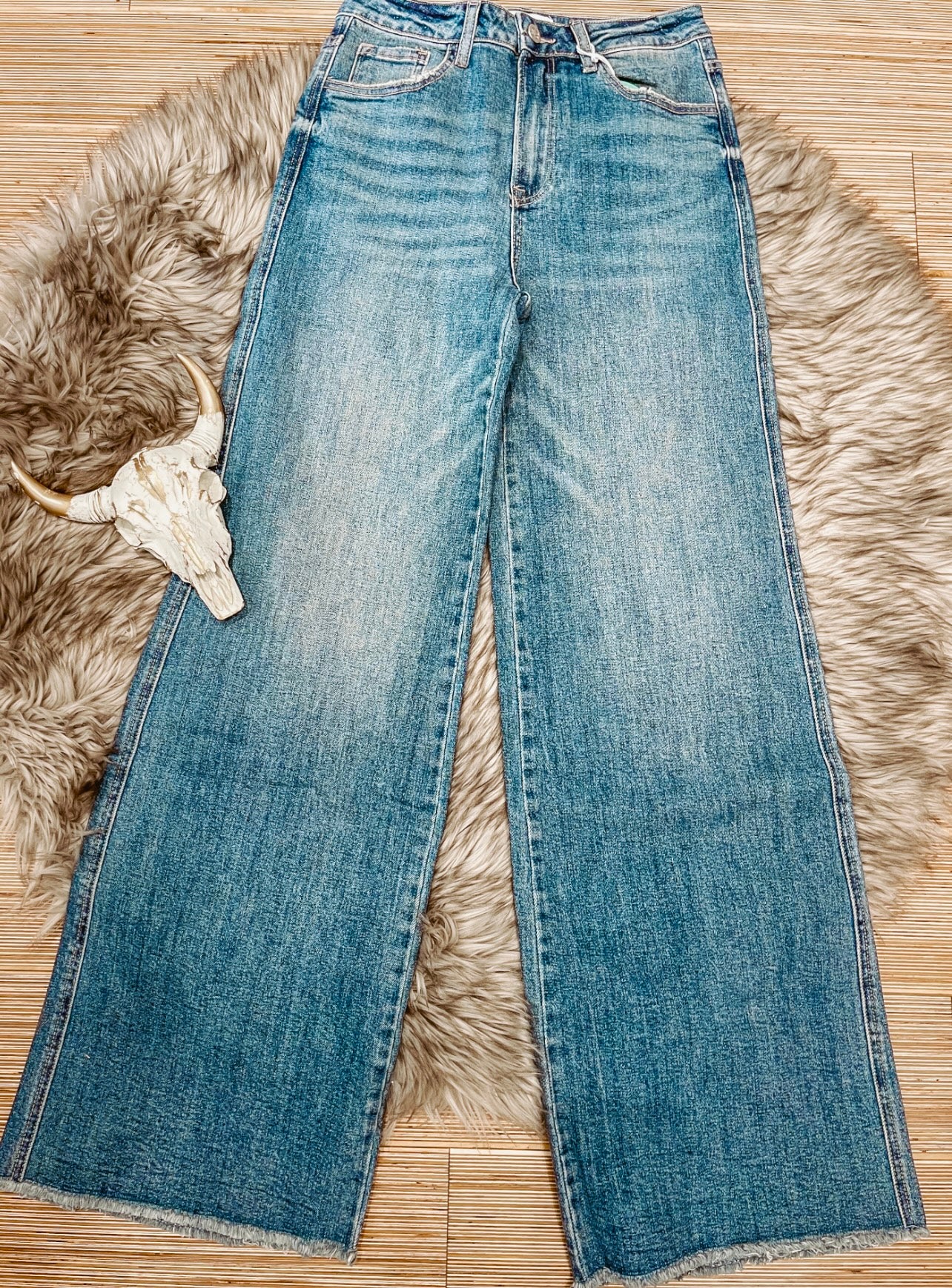 PREPARE TO FALL IN LOVE! One of our most popular denim styles now comes in a NON distressed jean! The stretch is amazing (but wont stretch out to baggy!) Keeps their form just right! Made with premium quality denim with a high rise waist and a dad jean style wide leg hem.